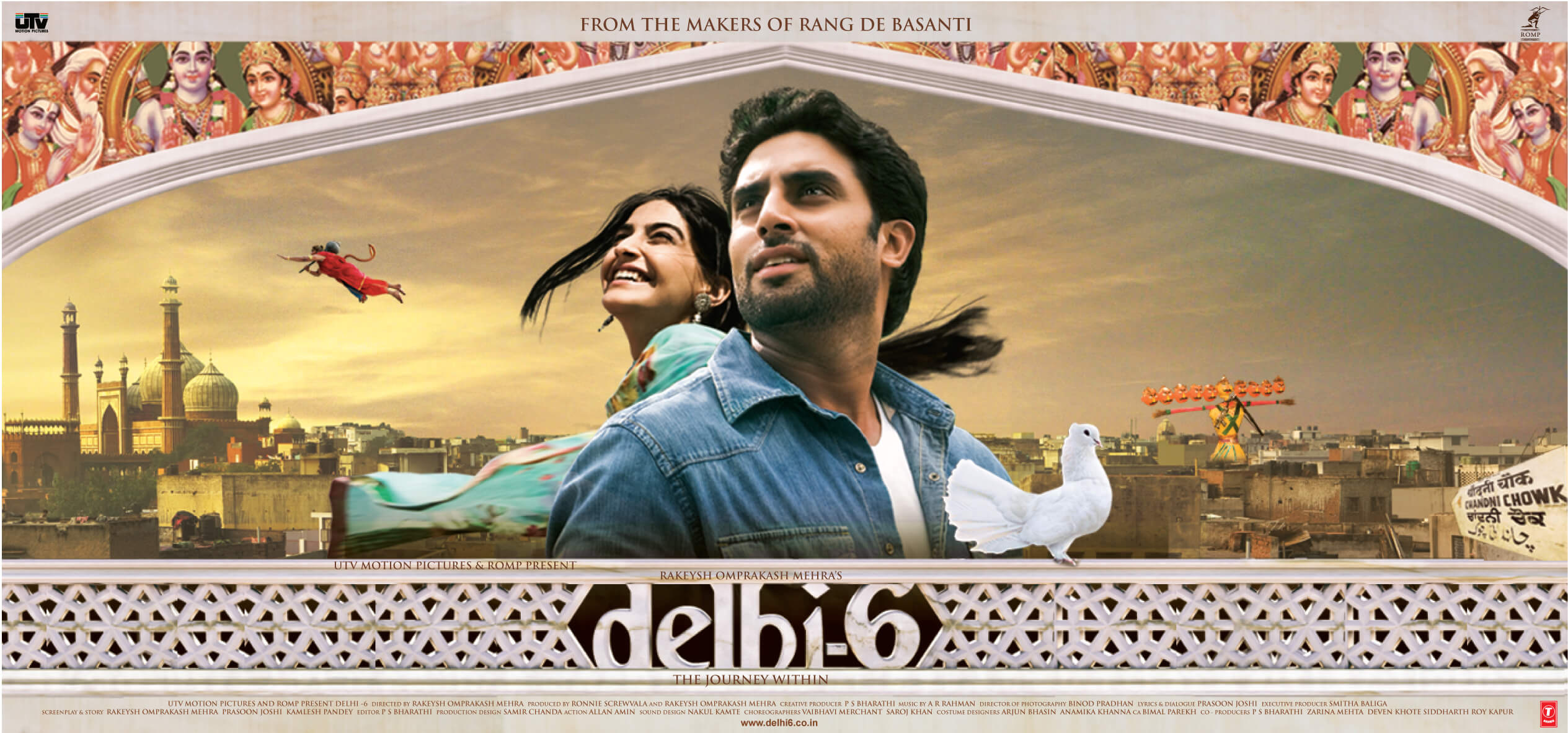 Delhi-6 is a 2009 Hindi-language drama film directed by Rakesh Omprakash Mehra. The film stars Abhishek Bachchan as an NRI who arrives in India with his ailing grandmother (played by Waheeda Rehman) and begins discovering his roots before getting embroiled in a religious dispute involving a mysterious monkey-like attacker. The film co-stars Sonam Kapoor, Aditi Rao Hydari, Rishi Kapoor, Supriya Pathak, Atul Kulkarni, Pavan Malhotra, Deepak Dobriyal, Divya Dutta, Vijay Raaz and Om Puri. The film was popularly termed “Un-Bollywood” by Variety Magazine.